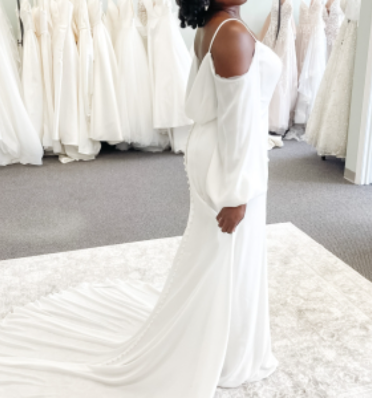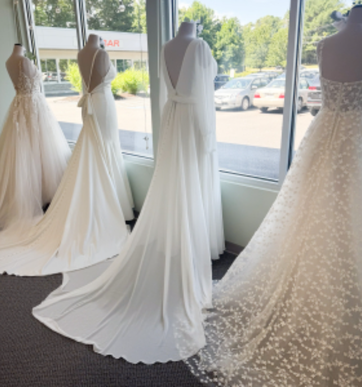 Our boutique offers a classically New England style—timeless lace, clean lines, minimalist elegance, and just the right touch of sparkle. With a curated collection of gowns in sizes 4–28 and price points ranging from $1,500–$3,500, we’re passionate about making sure every bride feels seen, comfortable, and beautiful.