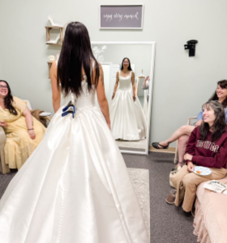 What truly sets us apart is the experience. Each bride is welcomed into one of our beautiful and comfortable private bridal suites for a two-hour appointment, where you’ll work one-on-one with a down-to-earth, knowledgeable bridal stylist who’s here to listen, encourage, and guide—not pressure. We’re not just helping you find a dress; we’re creating a moment you’ll always remember: the moment you felt like a bride.